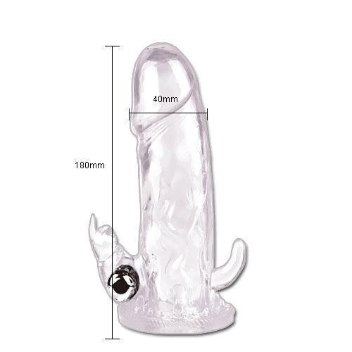Questa guaina per l'estensione del pene ha una punta solida per darti quella lunghezza extra ogni volta che lo desideri. Usa il proiettile sopra per stimolare il clitoride o usalo sotto per stimolare le palle. Fornito con batterie. Taglia unica.