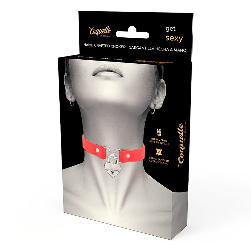 COQUETTE - CHIC DESIRE COLLANA IN PELLE VEGANA ROSSA CON ACCESSORIO CUORE CON CHIAVE
