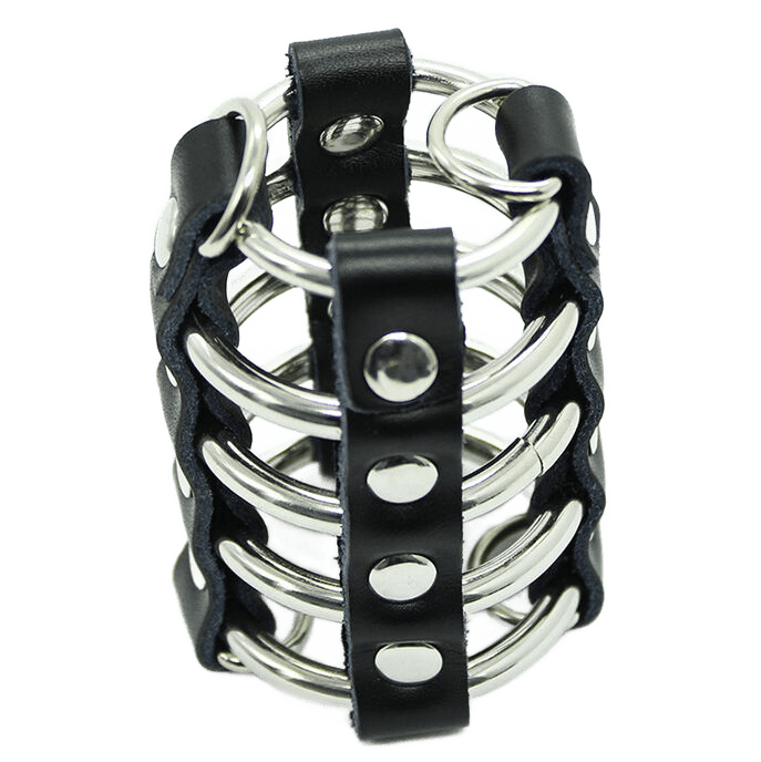 OHMAMA FETISH - GABBIA PER PENE CON ANELLI IN METALLO E CINTURINI IN PELLE
