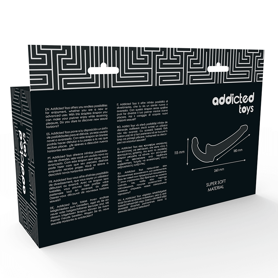 Completamente senza spalline, è tenuto in posizione da una sonda curva, inseribile e curva, che offre all'utente una deliziosa stimolazione del punto G. L'estremità a coste più lunga viene utilizzata per penetrare il tuo partner maschile o femminile.