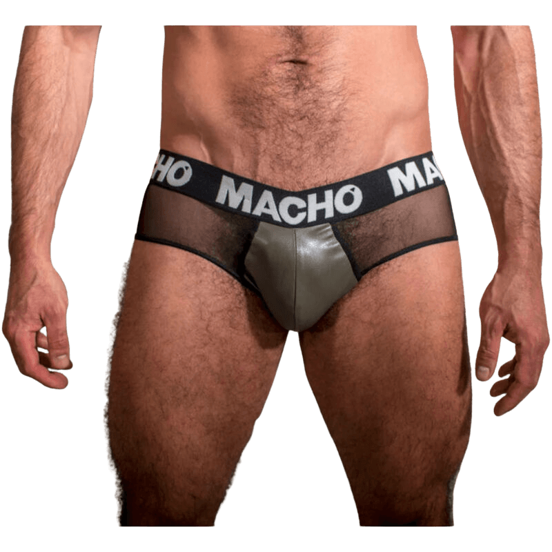 Si tratta di uno slip molto sensuale della nuova collezione SHADES FETISH, con coppa frontale che mette in risalto la mascolinità, in materiale elastico in similpelle. Colore verde militare